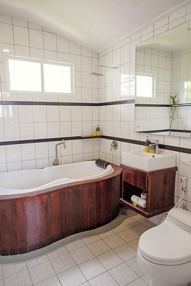 This villa has a balcony or terrace with seating area, views of the jungle and air conditioning.